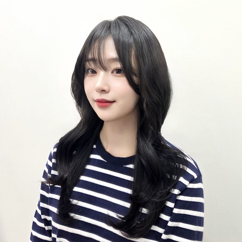 사이드 가르마에서는 부드러운 인상이 더해져요.