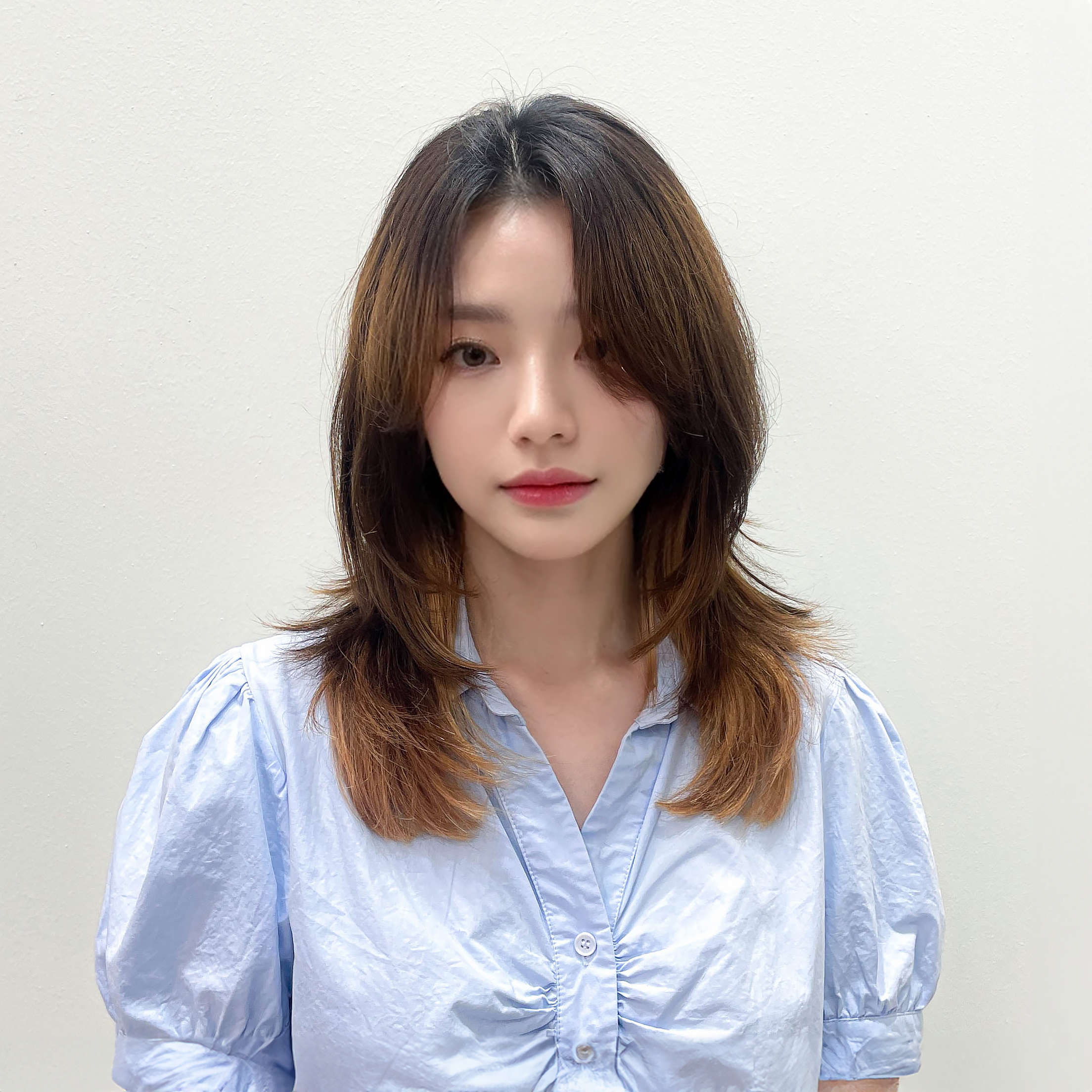 - 얼굴 옆에 레이어드 컬이 자연스럽게 감싸도록 디자인