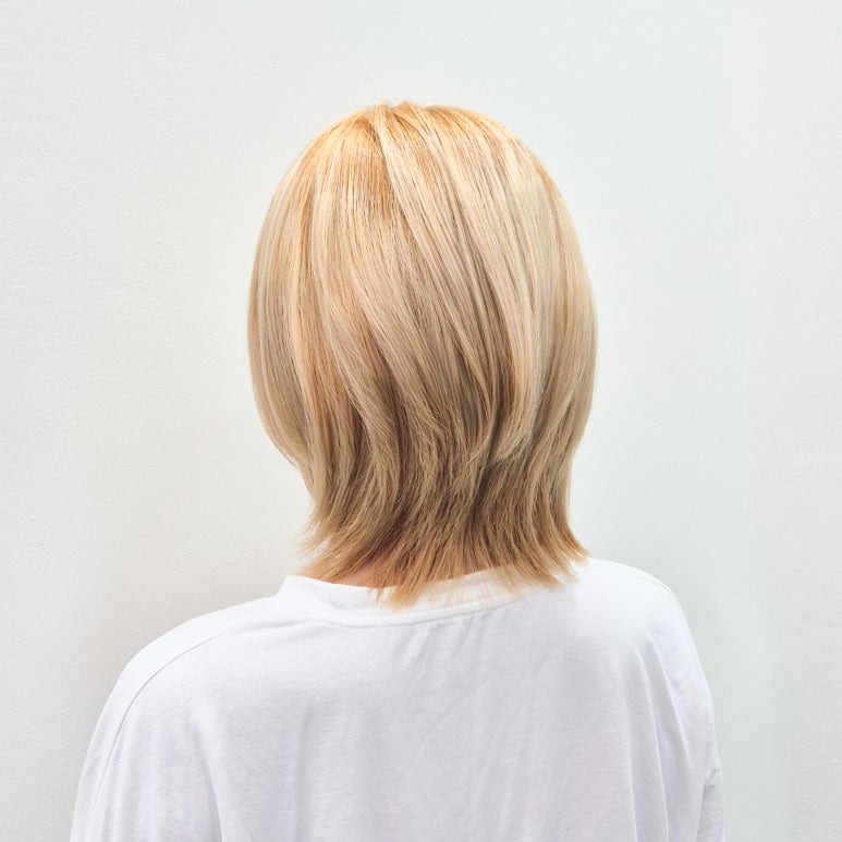 탈색과 단발 레이어드컷의 조화